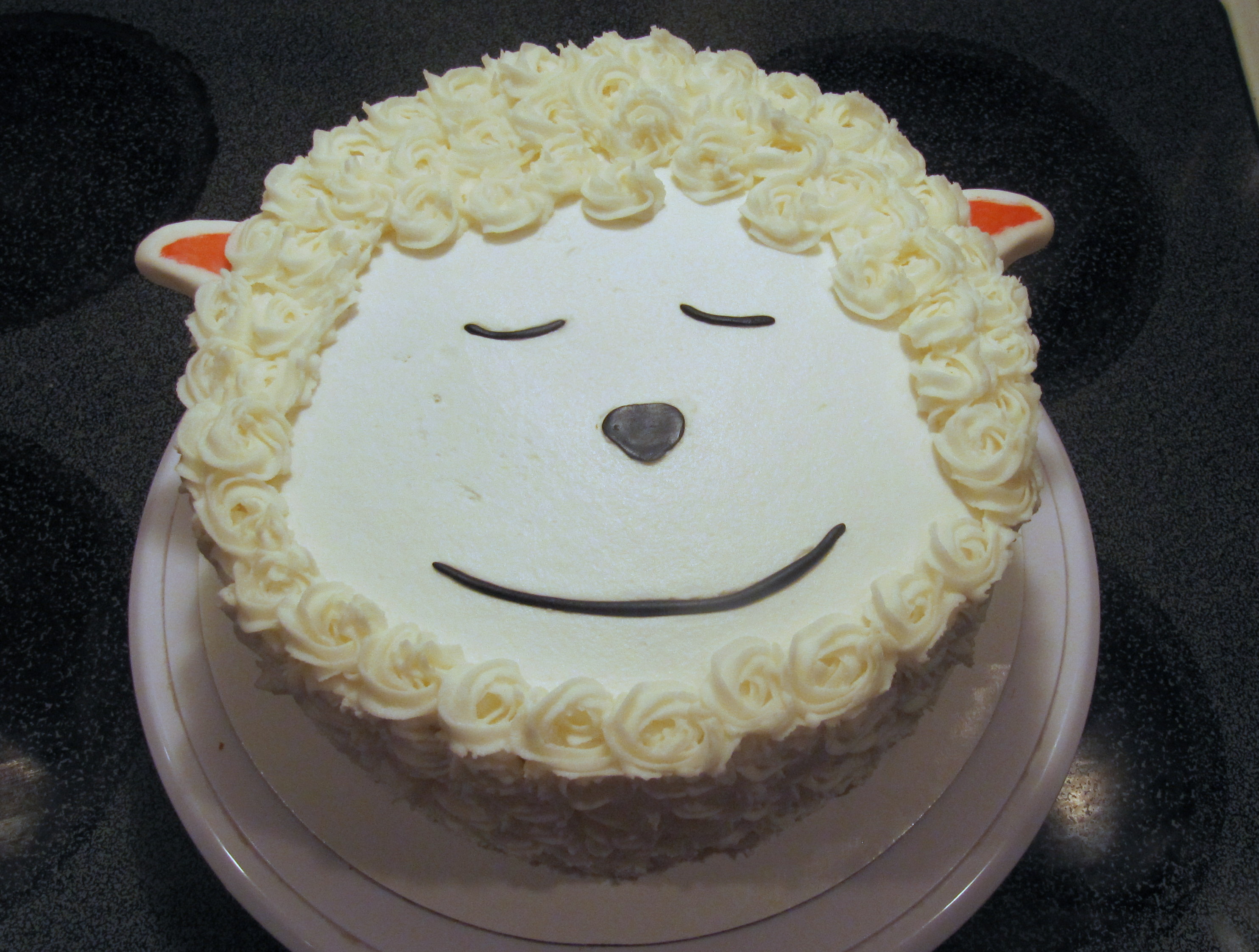 Half white , half chocolate with vanilla buttercream icing. All decorations are buttercream except for the bows, they are made out of fondant.