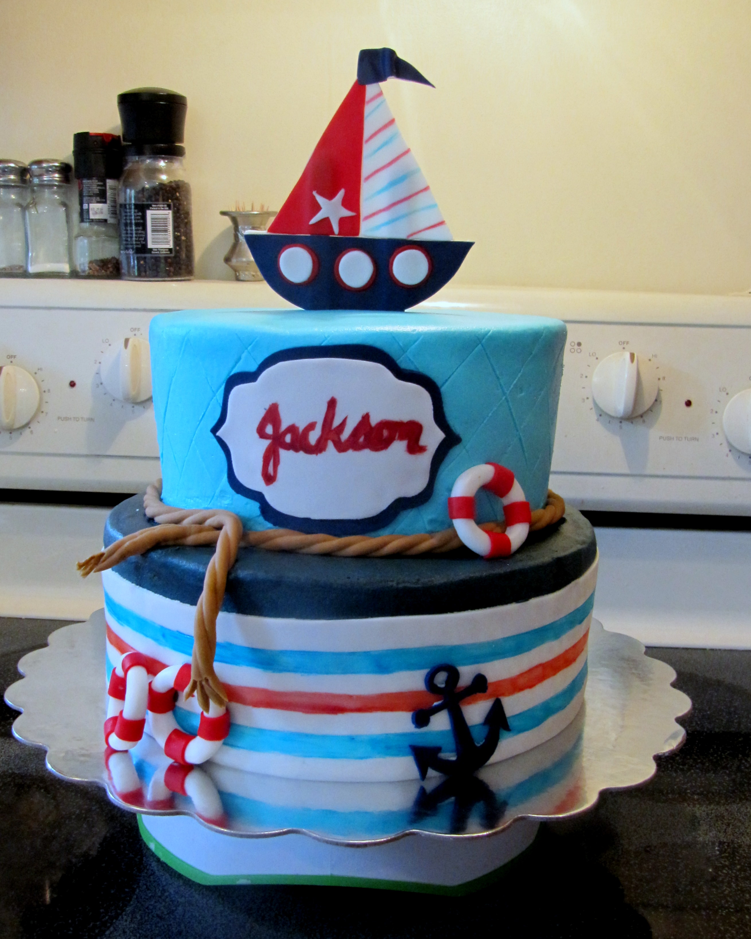 Baby Showers · Birthdays · Children's Birthdays · Other Occasions Ahoy It’s A Boy! July 25, 2014 cakeplaceLeave a comment A 10″ and 8″ white cake iced with vanilla buttercream icing. All decorations are handmade from fondant!