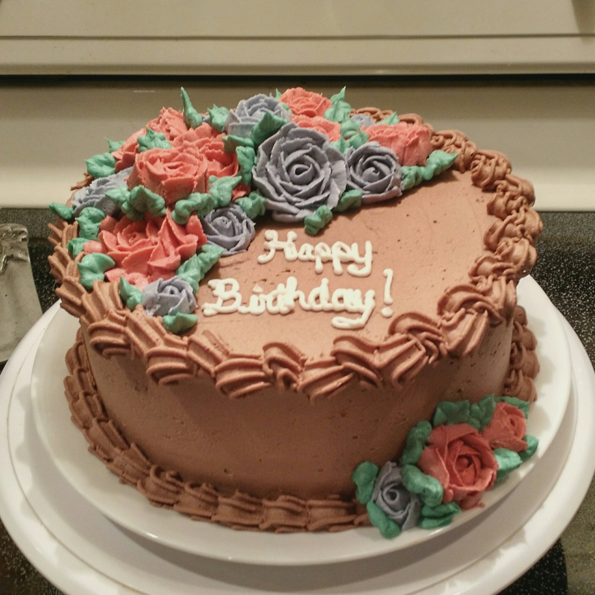 Anniversarys · Birthdays · Other Occasions Roses April 5, 2016 cakeplaceLeave a comment An 8″ chocolate cake iced with chocolate buttercream icing. All decorations are vanilla buttercream.