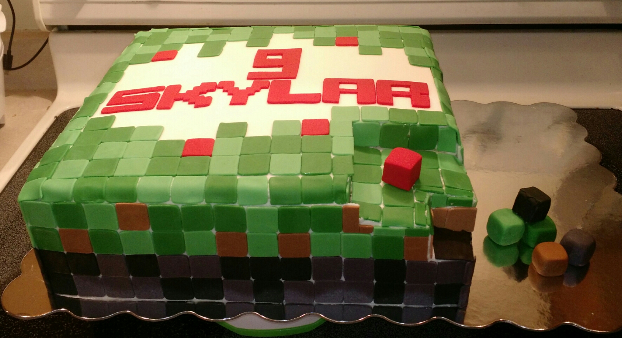 An 11″ square vanilla cake iced with vanilla buttercream. All decorations are handmade from fondant, each and every square…😉