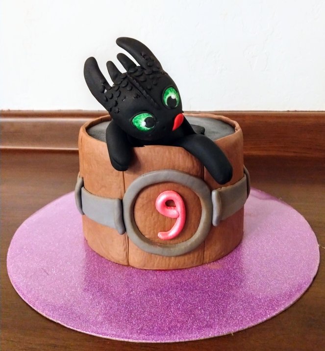 A 10″ chocolate cake iced with chocolate buttercream. All decorations are hand made from fondant.