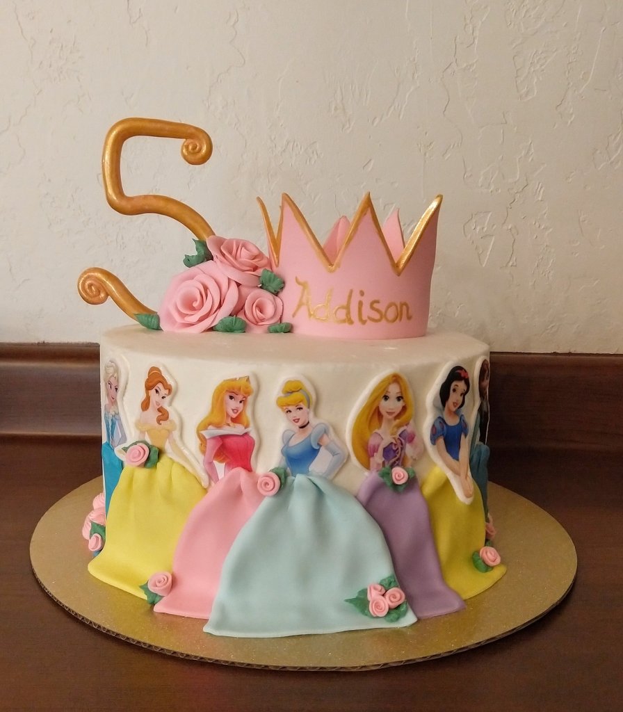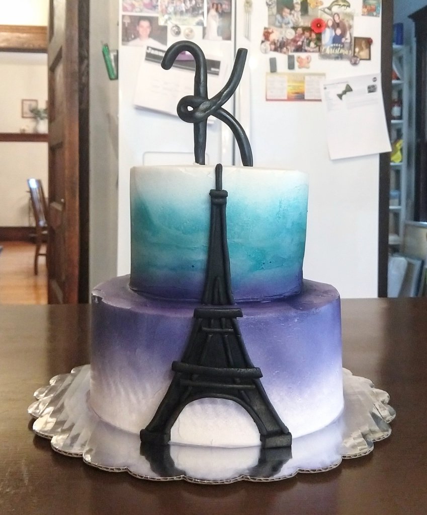 An 8″ vanilla cake with a sugar cookie middle iced with vanilla buttercream. All decorations are hand made from fondant.